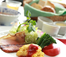 杜仲茶ポークグリル・オードブル・スープ・サラダ・小鉢2品・デザート・ライス